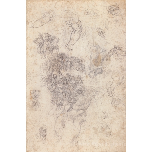 Nous vous proposons une reproduction artisanale sur toile du célèbre tableau 'Études pour "le dernier jugement"' de Michelangelo, provenant du Musée de la Reproduction.