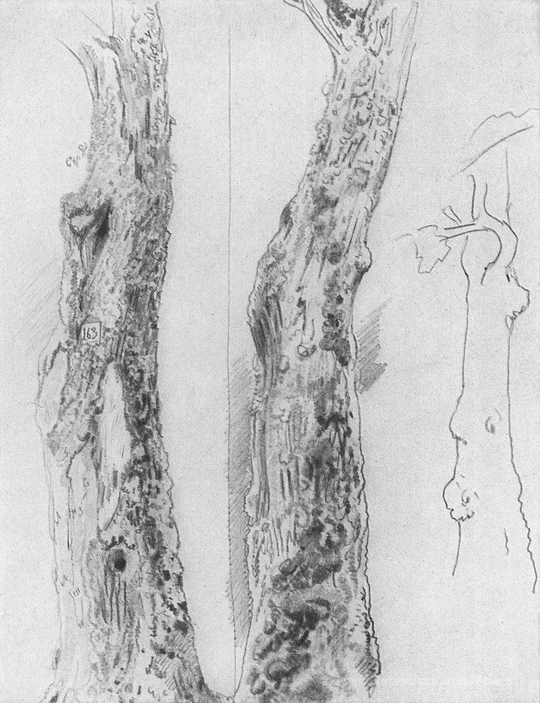 Nous vous proposons une reproduction artisanale sur toile du célèbre tableau 'Étudier pour les troncs' de Ivan Shishkin, provenant du Musée de la Reproduction.