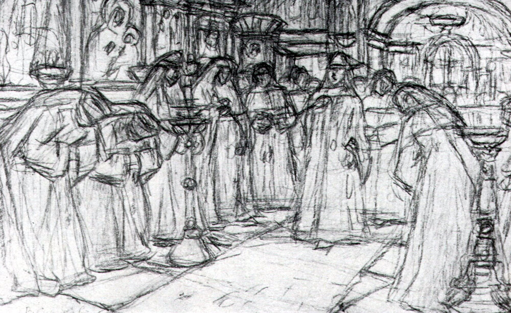 Nous vous proposons une reproduction artisanale sur toile du célèbre tableau 'Étudiez à "la visite de Tsarevna de couvent"' de Vasily Surikov, provenant du Musée de la Reproduction.