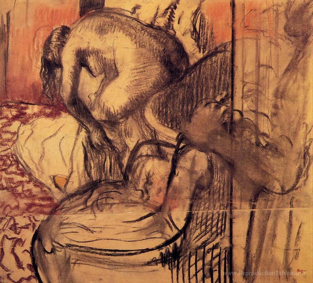 Nous vous proposons une reproduction artisanale sur toile du célèbre tableau 'Après le bain' de Edgar Degas, provenant du Musée de la Reproduction.