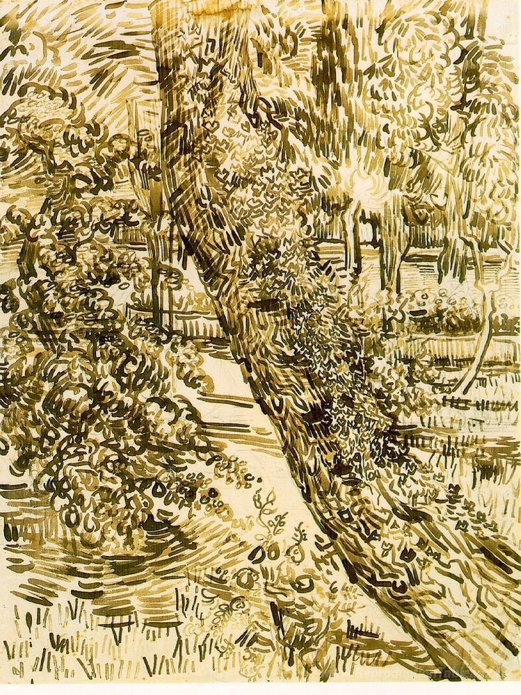 Nous vous proposons une reproduction artisanale sur toile du célèbre tableau 'Arbre avec lierre dans le jardin d'asile' de Vincent van Gogh, provenant du Musée de la Reproduction.