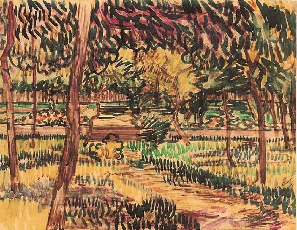Nous vous proposons une reproduction artisanale sur toile du célèbre tableau 'Arbres dans le jardin de l'asile' de Vincent van Gogh, provenant du Musée de la Reproduction.