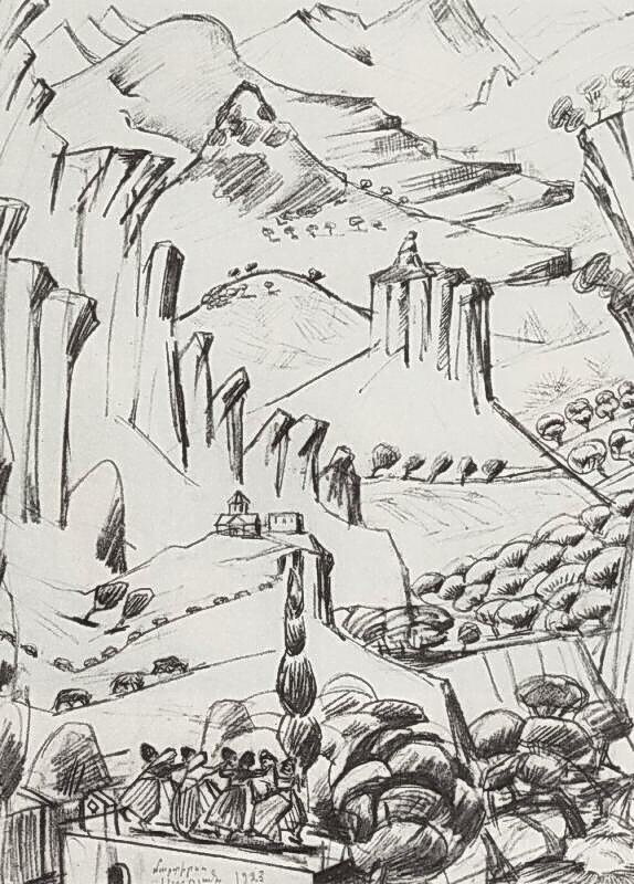 Nous vous proposons une reproduction artisanale sur toile du célèbre tableau 'Arménie' de Martiros Saryan, provenant du Musée de la Reproduction.
