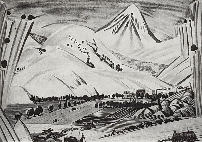Nous vous proposons une reproduction artisanale sur toile du célèbre tableau 'Arménie' de Martiros Saryan, provenant du Musée de la Reproduction.