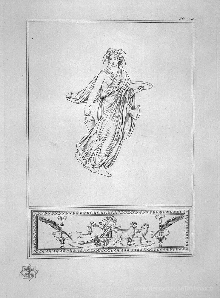 Nous vous proposons une reproduction artisanale sur toile du célèbre tableau 'Bacchante portant une assiette et un seau' de Giovanni Battista Piranesi, provenant du Musée de la Reproduction.
