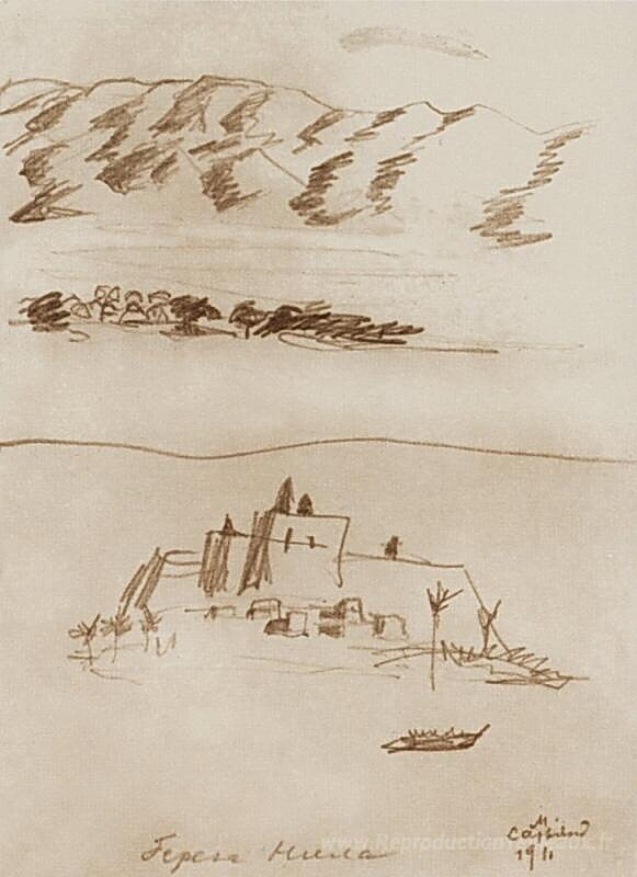 Nous vous proposons une reproduction artisanale sur toile du célèbre tableau 'Banque du Nil' de Martiros Saryan, provenant du Musée de la Reproduction.