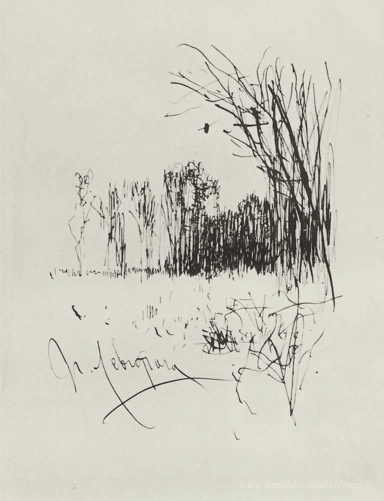 Nous vous proposons une reproduction artisanale sur toile du célèbre tableau 'Bord de la forêt' de Isaac Levitan, provenant du Musée de la Reproduction.