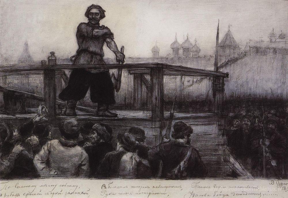 Nous vous proposons une reproduction artisanale sur toile du célèbre tableau 'Bourreau' de Vasily Surikov, provenant du Musée de la Reproduction.