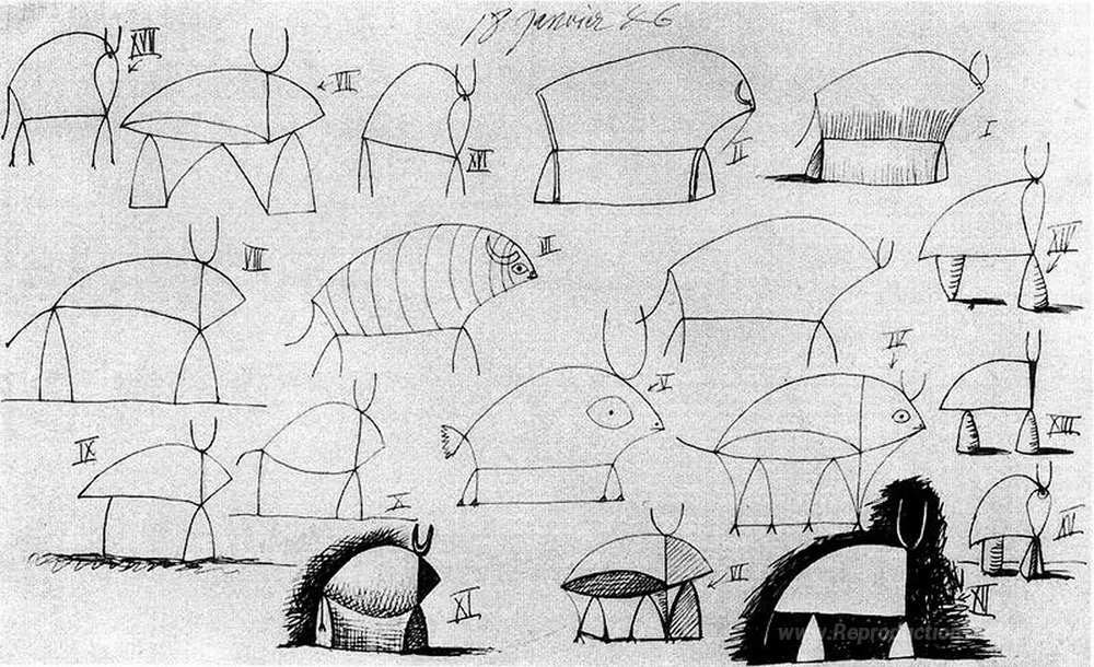 Nous vous proposons une reproduction artisanale sur toile du célèbre tableau 'Bull (étude)' de Pablo Picasso, provenant du Musée de la Reproduction.
