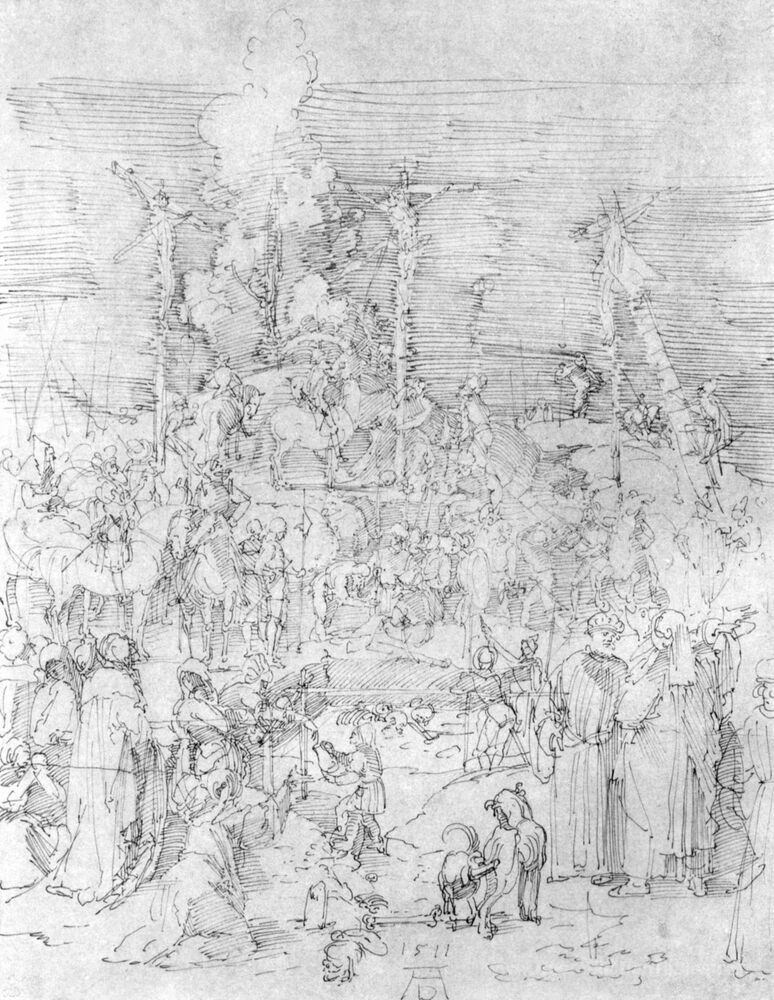 Nous vous proposons une reproduction artisanale sur toile du célèbre tableau 'Calvaire' de Albrecht Durer, provenant du Musée de la Reproduction.