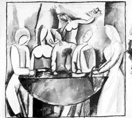 Nous vous proposons une reproduction artisanale sur toile du célèbre tableau 'Carnaval au bistrot' de Pablo Picasso, provenant du Musée de la Reproduction.