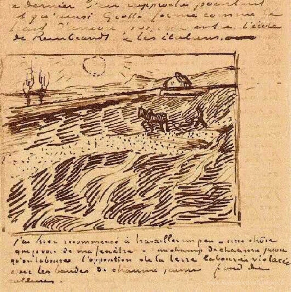 Nous vous proposons une reproduction artisanale sur toile du célèbre tableau 'Champ fermé avec laboureur' de Vincent van Gogh, provenant du Musée de la Reproduction.