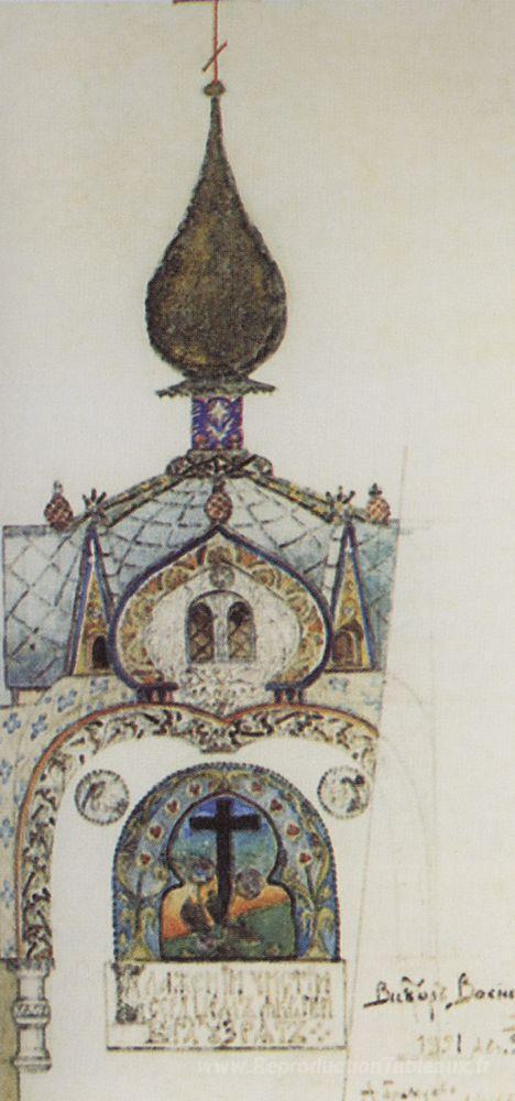 Nous vous proposons une reproduction artisanale sur toile du célèbre tableau 'Chapelle sur la tombe d'Alexander Mamontov à Abramtsevo' de Viktor Vasnetsov, provenant du Musée de la Reproduction.