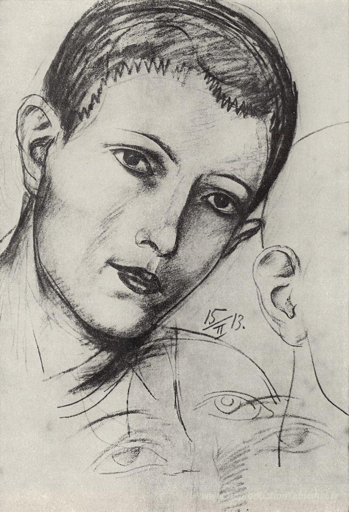 Nous vous proposons une reproduction artisanale sur toile du célèbre tableau 'Chef de jeune homme (Adam)' de Kuzma Petrov-Vodkin, provenant du Musée de la Reproduction.
