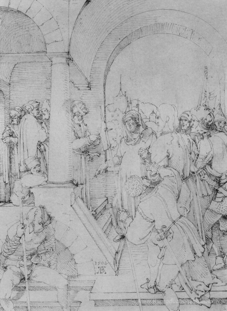 Nous vous proposons une reproduction artisanale sur toile du célèbre tableau 'Christ avant Pilate' de Albrecht Durer, provenant du Musée de la Reproduction.