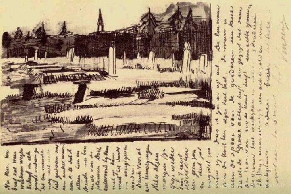 Nous vous proposons une reproduction artisanale sur toile du célèbre tableau 'Cimetière' de Vincent van Gogh, provenant du Musée de la Reproduction.