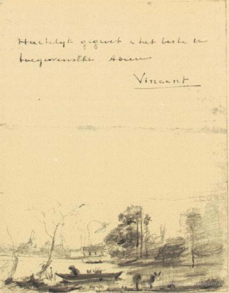 Nous vous proposons une reproduction artisanale sur toile du célèbre tableau 'Città d'Avray: L'Etang au Batelier' de Vincent van Gogh, provenant du Musée de la Reproduction.