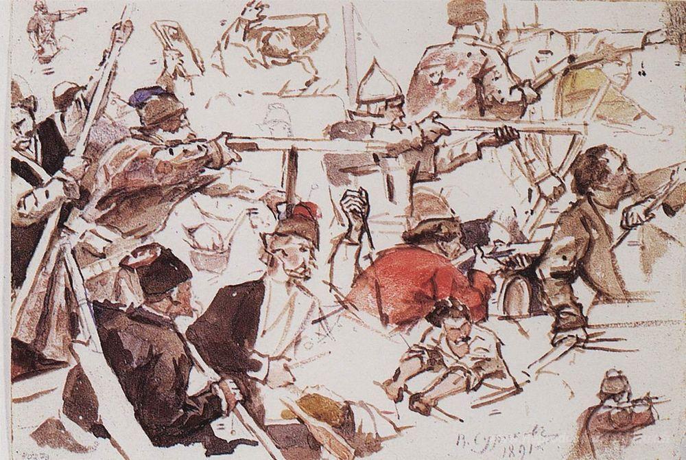Nous vous proposons une reproduction artisanale sur toile du célèbre tableau 'Cosaques' de Vasily Surikov, provenant du Musée de la Reproduction.