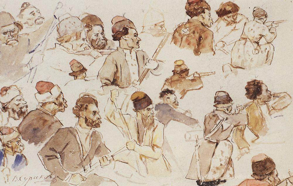 Nous vous proposons une reproduction artisanale sur toile du célèbre tableau 'Cosaques' de Vasily Surikov, provenant du Musée de la Reproduction.