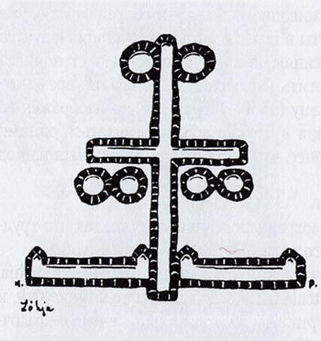 Nous vous proposons une reproduction artisanale sur toile du célèbre tableau 'Croix symbolique sur le mur extérieur à Lohia' de Nicholas Roerich, provenant du Musée de la Reproduction.