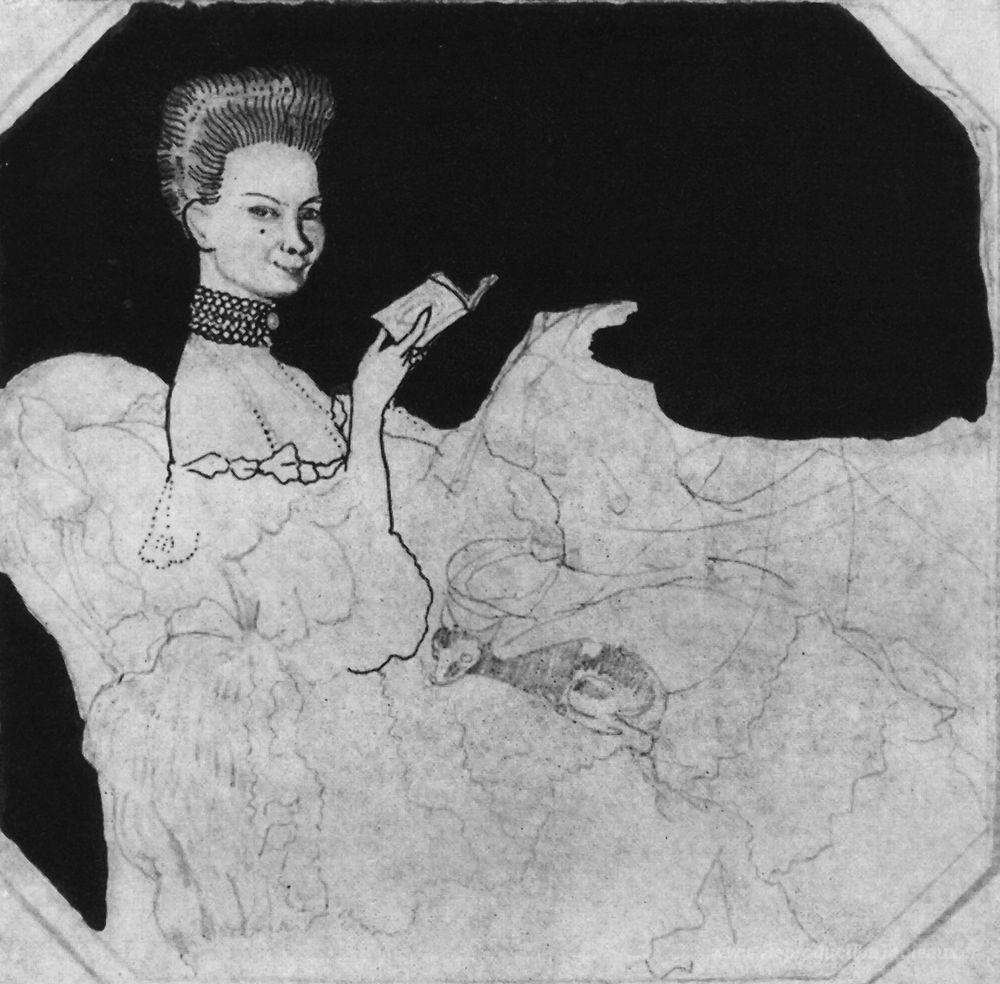 Nous vous proposons une reproduction artisanale sur toile du célèbre tableau 'Dame avec le chien' de Konstantin Somov, provenant du Musée de la Reproduction.