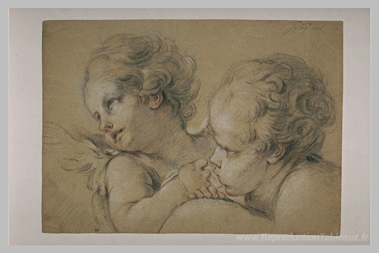 Nous vous proposons une reproduction artisanale sur toile du célèbre tableau 'Danger à deux têtes' de Jean-Honore Fragonard, provenant du Musée de la Reproduction.