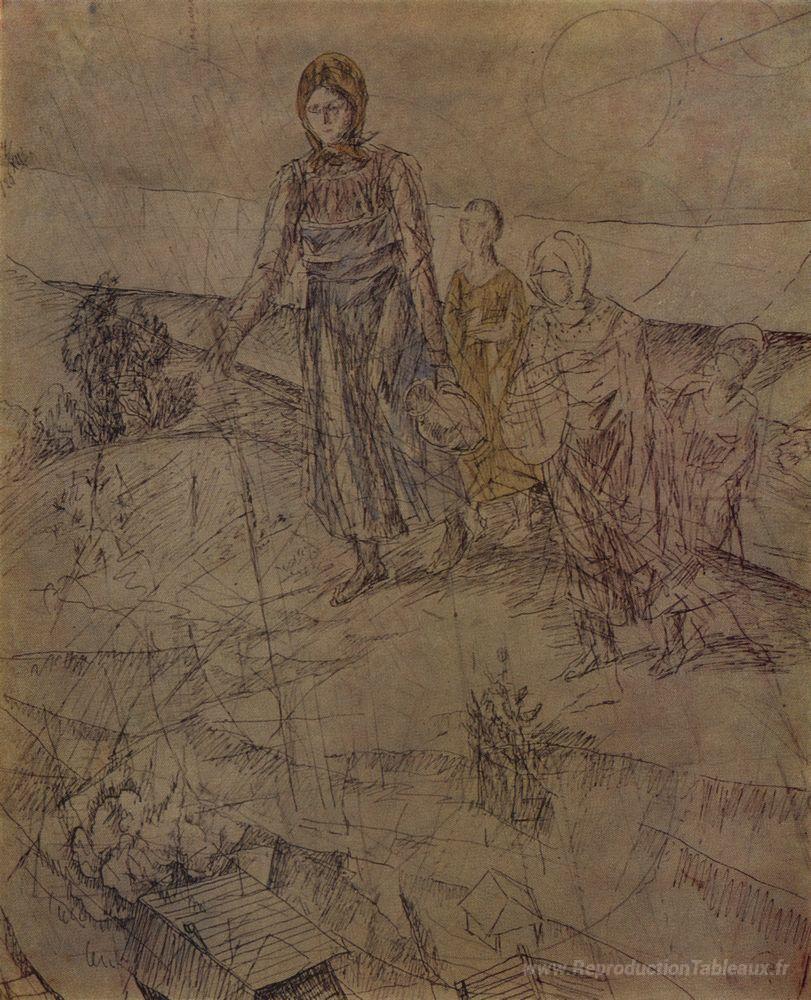 Nous vous proposons une reproduction artisanale sur toile du célèbre tableau 'Dans le' de Kuzma Petrov-Vodkin, provenant du Musée de la Reproduction.