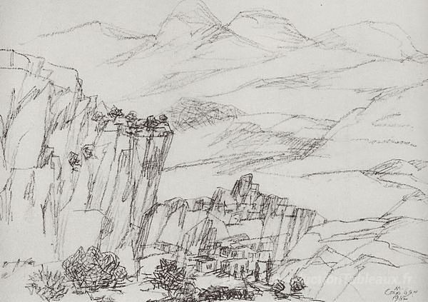 Nous vous proposons une reproduction artisanale sur toile du célèbre tableau 'Dans les montagnes' de Martiros Saryan, provenant du Musée de la Reproduction.