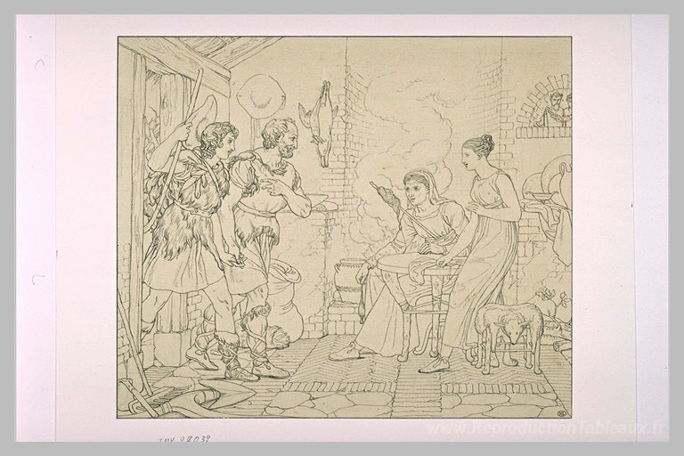 Nous vous proposons une reproduction artisanale sur toile du célèbre tableau 'Daphnis et Chloé' de Pierre-Narcisse Guerin, provenant du Musée de la Reproduction.