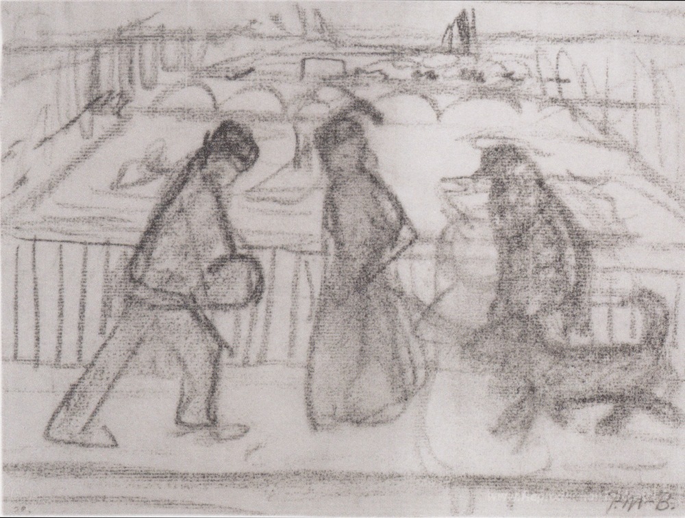Nous vous proposons une reproduction artisanale sur toile du célèbre tableau 'Des chiffres avec son chien sur un pont à Paris' de Paula Modersohn-Becker, provenant du Musée de la Reproduction.