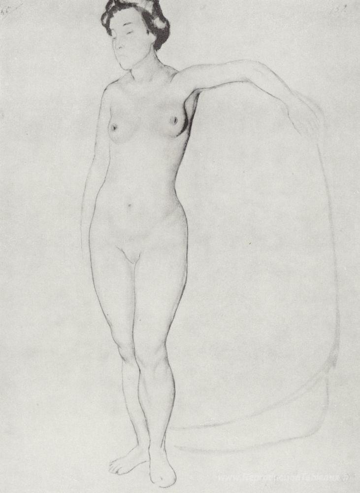 Nous vous proposons une reproduction artisanale sur toile du célèbre tableau 'Dessin pour le rêve de la peinture' de Kuzma Petrov-Vodkin, provenant du Musée de la Reproduction.