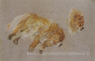 Nous vous proposons une reproduction artisanale sur toile du célèbre tableau 'Deux études sur le chien endormi' de Avigdor Arikha, provenant du Musée de la Reproduction.