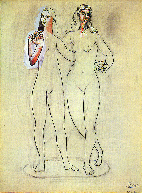 Nous vous proposons une reproduction artisanale sur toile du célèbre tableau 'Deux femmes nues' de Pablo Picasso, provenant du Musée de la Reproduction.
