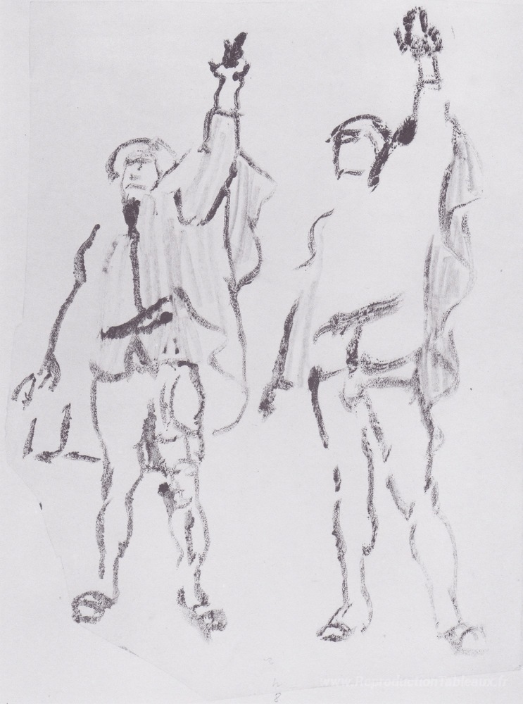 Nous vous proposons une reproduction artisanale sur toile du célèbre tableau 'Deux jurons' de Ferdinand Hodler, provenant du Musée de la Reproduction.