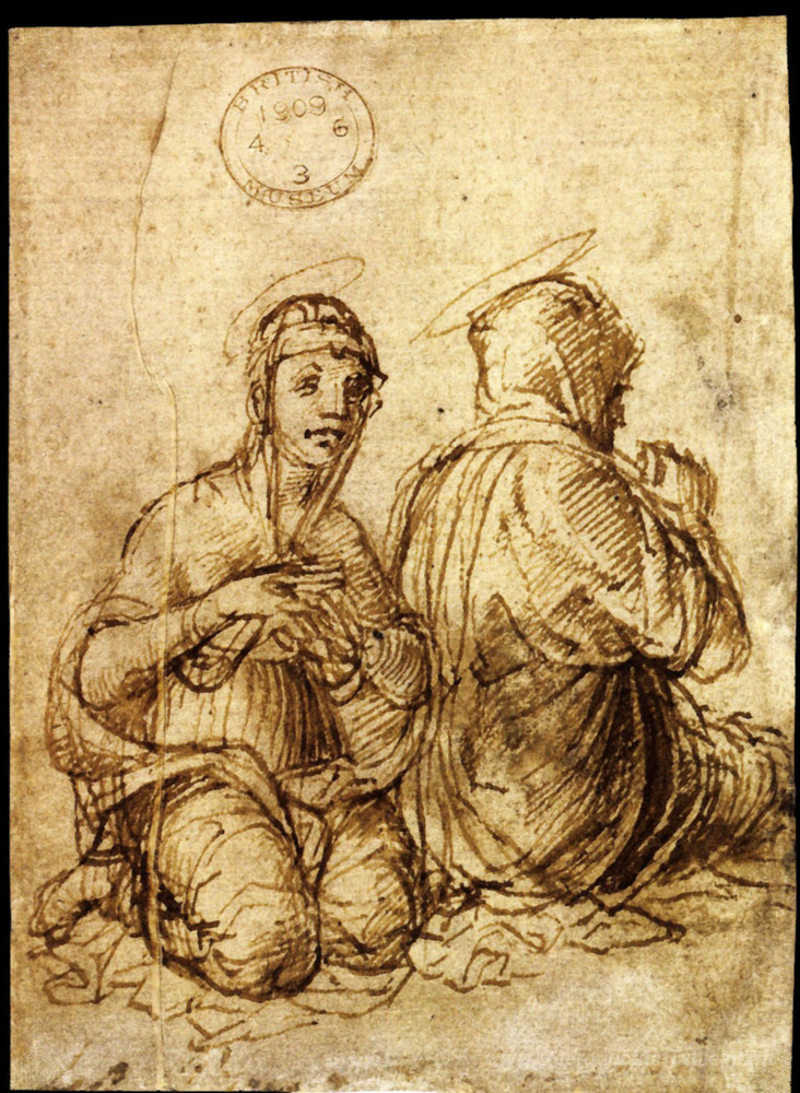 Nous vous proposons une reproduction artisanale sur toile du célèbre tableau 'Deux saints femmes dans la prière' de Andrea Mantegna, provenant du Musée de la Reproduction.