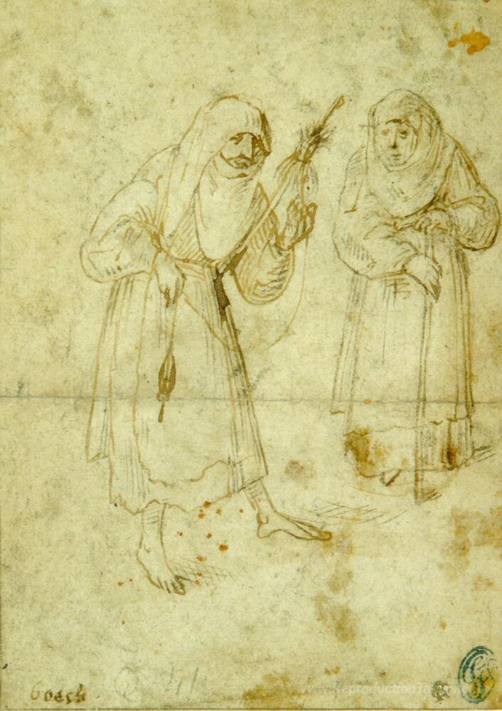 Nous vous proposons une reproduction artisanale sur toile du célèbre tableau 'Deux sorcières' de Hieronymus Bosch, provenant du Musée de la Reproduction.