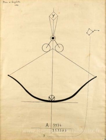 Nous vous proposons une reproduction artisanale sur toile du célèbre tableau 'Dieu à bicyclette' de Georges Ribemont-Dessaignes, provenant du Musée de la Reproduction.