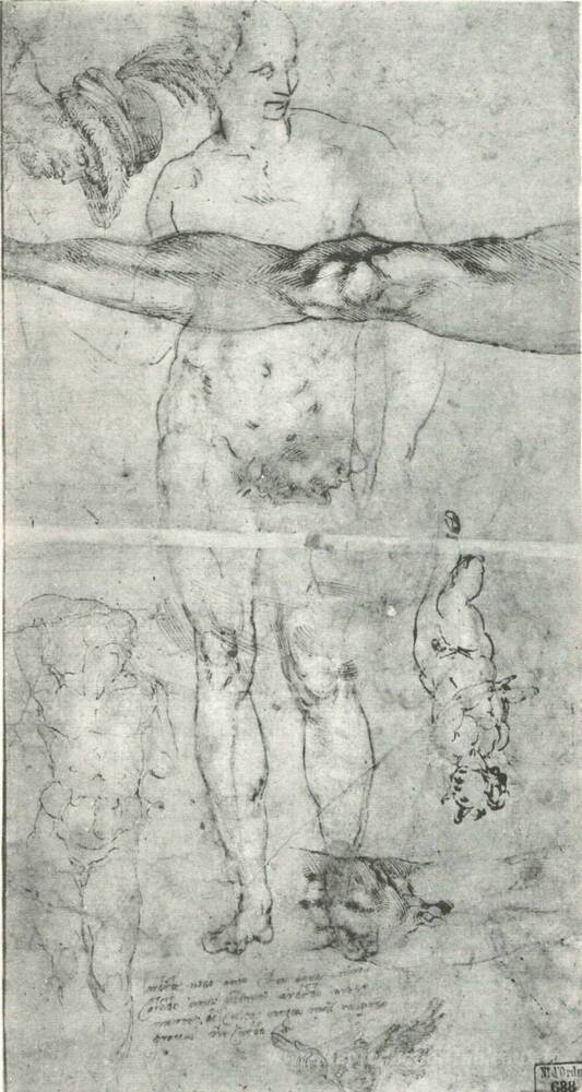 Nous vous proposons une reproduction artisanale sur toile du célèbre tableau 'Diverses études' de Michelangelo, provenant du Musée de la Reproduction.