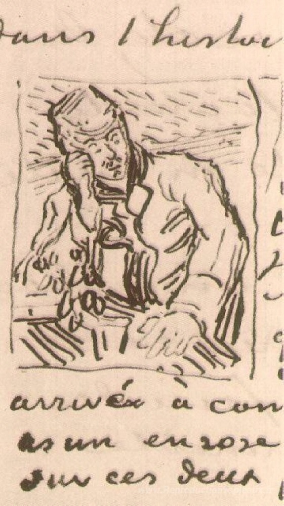 Nous vous proposons une reproduction artisanale sur toile du célèbre tableau 'Docteur Gachet assis à une table avec des livres et un verre ave' de Vincent van Gogh, provenant du Musée de la Reproduction.