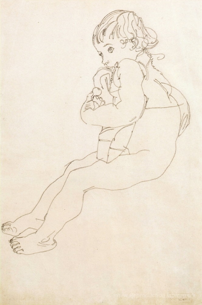 Nous vous proposons une reproduction artisanale sur toile du célèbre tableau 'Enfant assis' de Egon Schiele, provenant du Musée de la Reproduction.