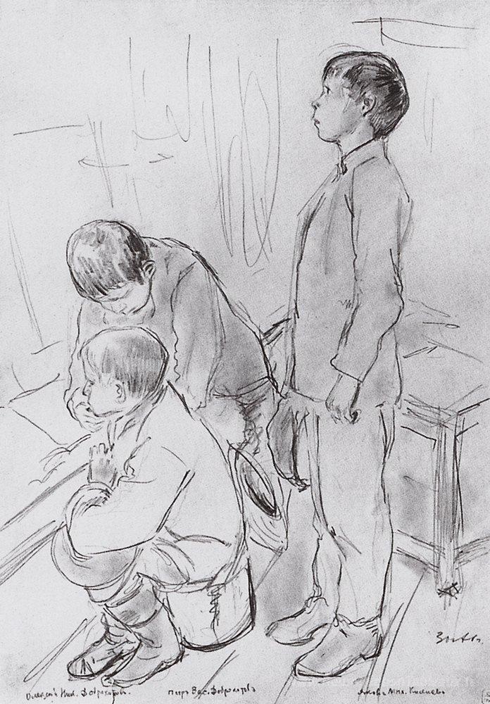 Nous vous proposons une reproduction artisanale sur toile du célèbre tableau 'Enfants' de Boris Kustodiev, provenant du Musée de la Reproduction.