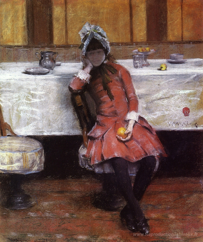Nous vous proposons une reproduction artisanale sur toile du célèbre tableau 'Esquisse sur une jeune fille sur Ocean Steamer' de William Merritt Chase, provenant du Musée de la Reproduction.