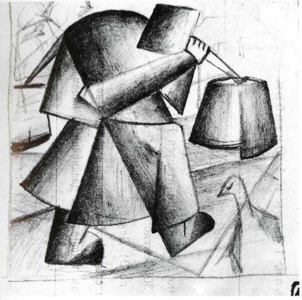 Nous vous proposons une reproduction artisanale sur toile du célèbre tableau 'Esquisser au portrait d'un constructeur' de Kazimir Malevich, provenant du Musée de la Reproduction.