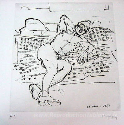 Nous vous proposons une reproduction artisanale sur toile du célèbre tableau 'Esquisser' de Yiannis Tsaroychis, provenant du Musée de la Reproduction.