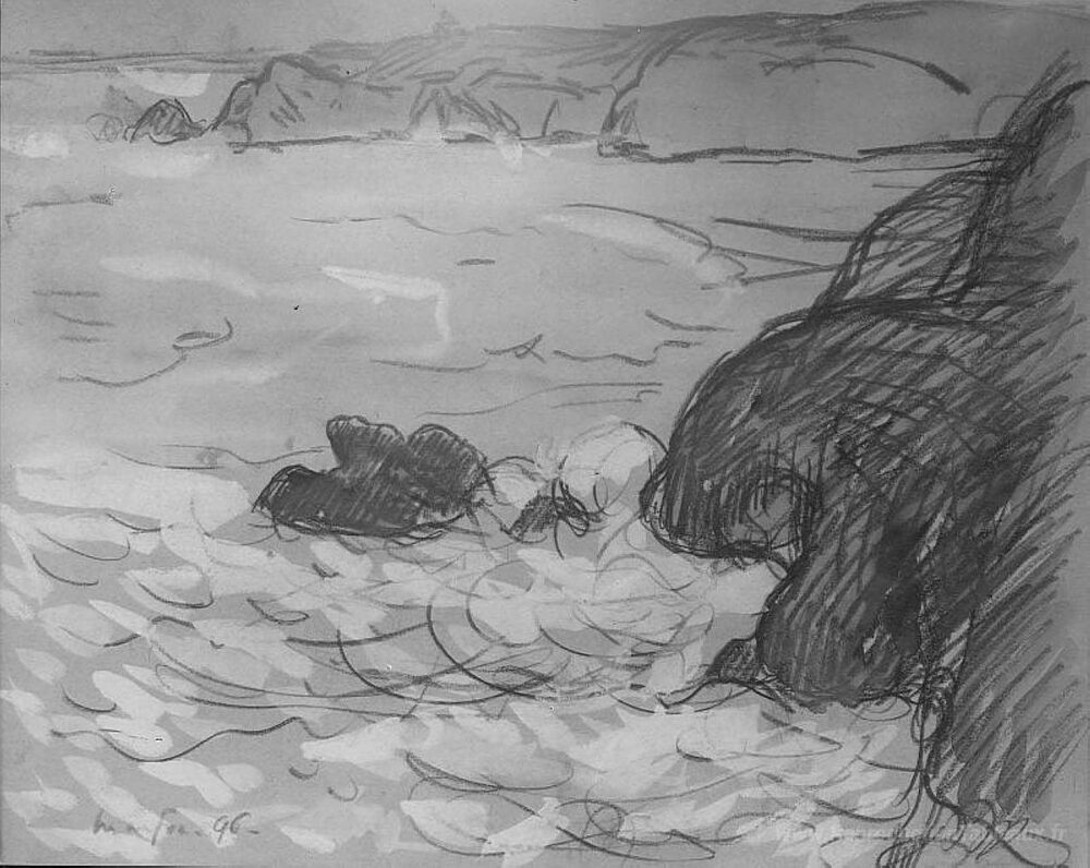 Nous vous proposons une reproduction artisanale sur toile du célèbre tableau 'Falaises et mer' de Maxime Maufra, provenant du Musée de la Reproduction.