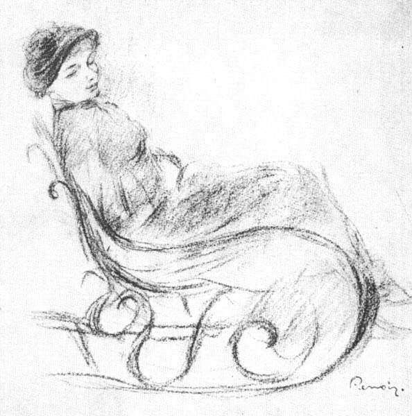 Nous vous proposons une reproduction artisanale sur toile du célèbre tableau 'Femme dans une chaise à bascule' de Pierre-Auguste Renoir, provenant du Musée de la Reproduction.