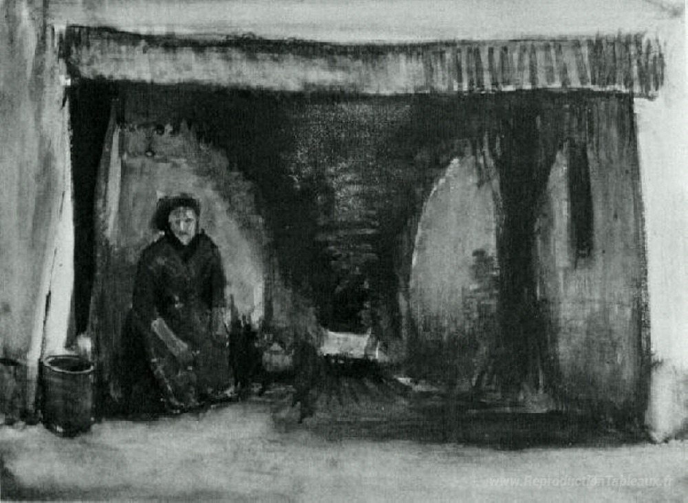 Nous vous proposons une reproduction artisanale sur toile du célèbre tableau 'Femme par la cheminée' de Vincent van Gogh, provenant du Musée de la Reproduction.