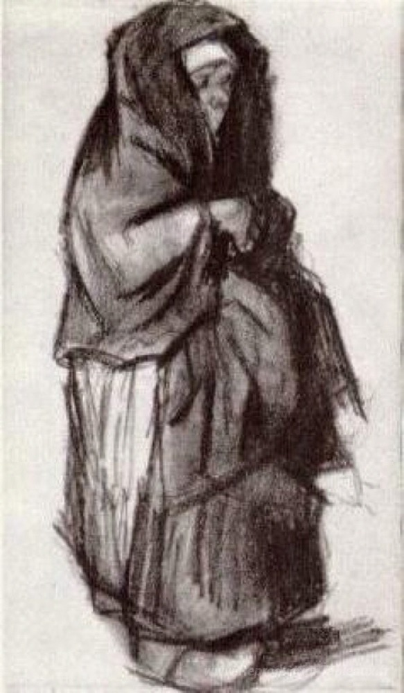 Nous vous proposons une reproduction artisanale sur toile du célèbre tableau 'Femme paysanne avec châle au-dessus de sa tête, vue de côté' de Vincent van Gogh, provenant du Musée de la Reproduction.