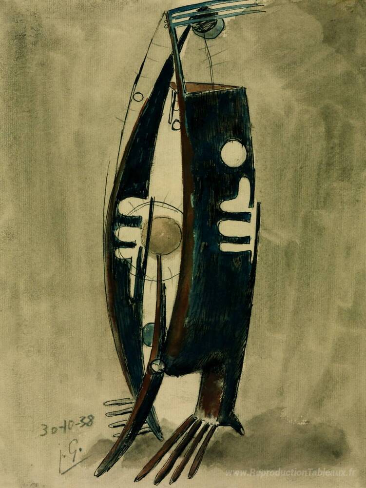 Nous vous proposons une reproduction artisanale sur toile du célèbre tableau 'Figure avec des balles' de Julio Gonzalez, provenant du Musée de la Reproduction.