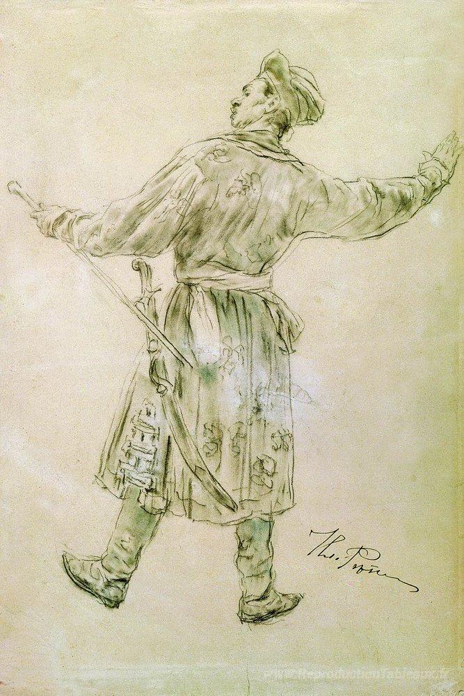Nous vous proposons une reproduction artisanale sur toile du célèbre tableau 'Figure de Dancing Man' de Ilya Repin, provenant du Musée de la Reproduction.